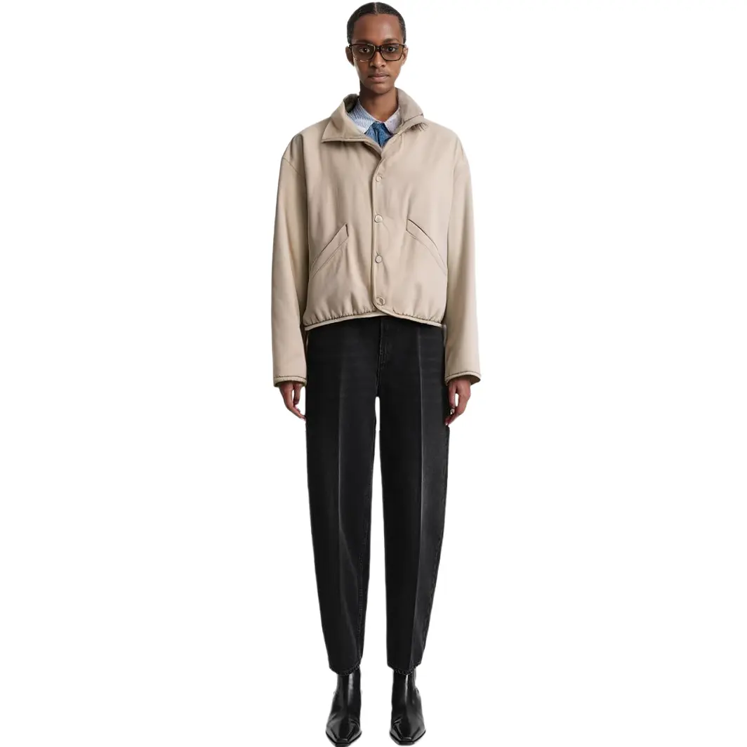 Изготовлен из саржевой хлопчатобумажной нейлоновой ткани. Хлопчатобумажный дизайн более теплый, а внутренняя ткань изготовлена из индийского фланелевого материала, мягкого на ощупь. Высокий воротник сохраняет шею в тепле. Его можно открывать и закрывать с помощью кнопки-защелки, а сзади есть подвесное кольцо, которое можно повесить на крючок. Манжета-молния для дополнительной свободности.