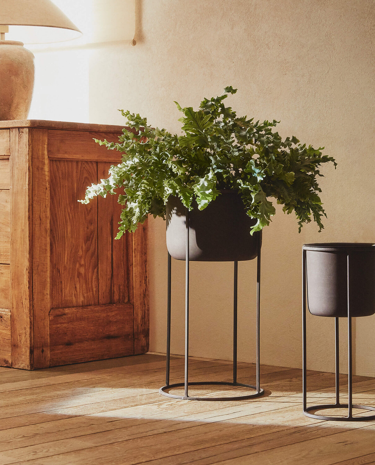 Цветочный горшок на металлической подставке с эффектом выгорания.