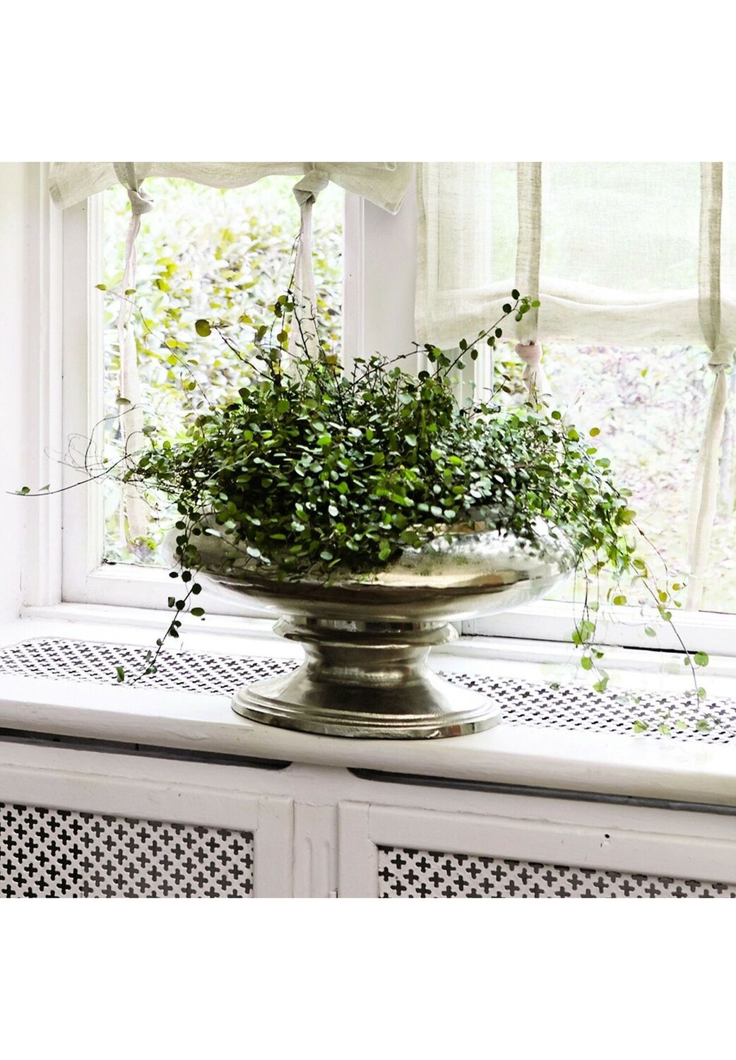 Описание предмета: Эффектной формы чашечки с устойчивым основанием. Благородный декоративный предмет из литого алюминия с красивой отделкой под старинное серебро. Ваза имеет внешний вид в стиле барокко с пышным цветочным декором или служит сосудом для множества небольших цветочных горшков.