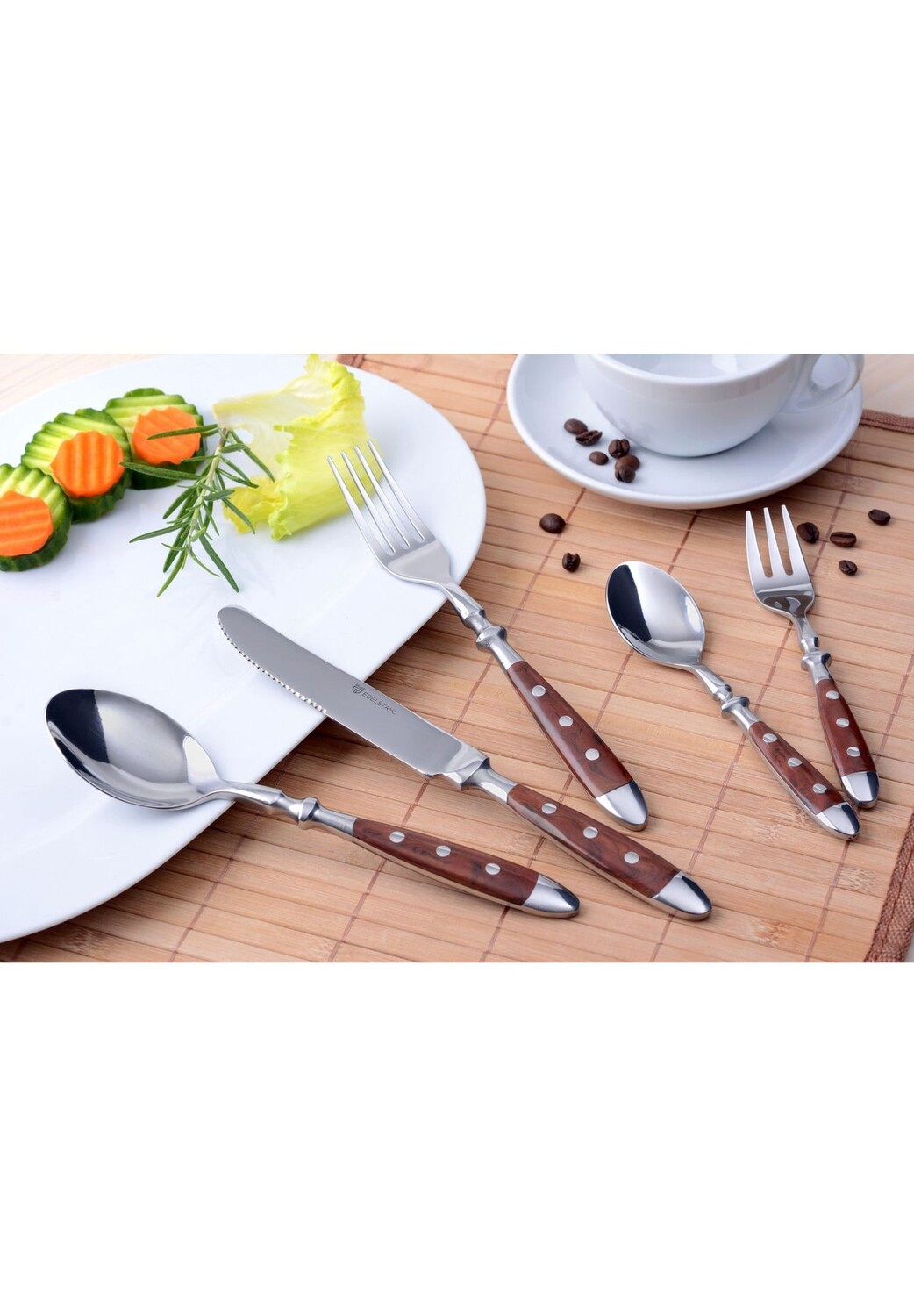 Описание товара: Эффектные и прочные столовые приборы в стиле загородного дома! Тяжелая кованая конструкция обеспечивает большой вес, а это значит, что столовые приборы удобно лежат в руке. Все ручки полируются вручную, поэтому между отдельными деталями могут быть небольшие различия. Комплект поставки: 6 столовых вилок, длина около 20 см, вес около 62 г. Ручки с заклепками