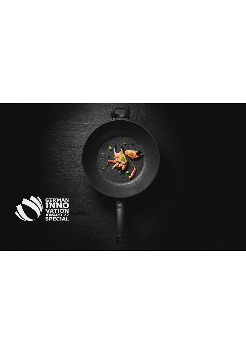 Особо устойчивое к царапинам антипригарное покрытие покрытие частицами карбида кремния - также позволяет использовать кухонную утварь из металла