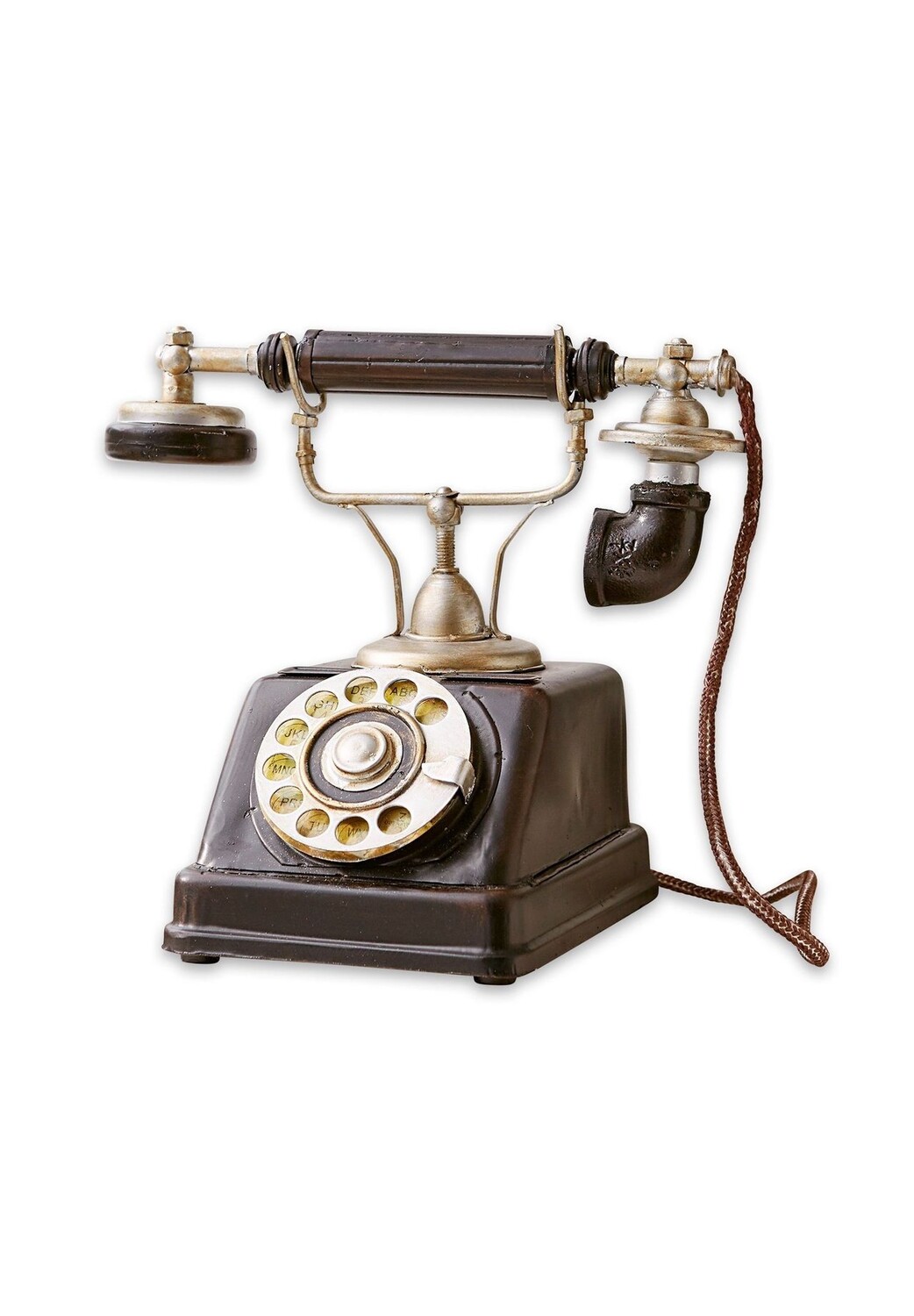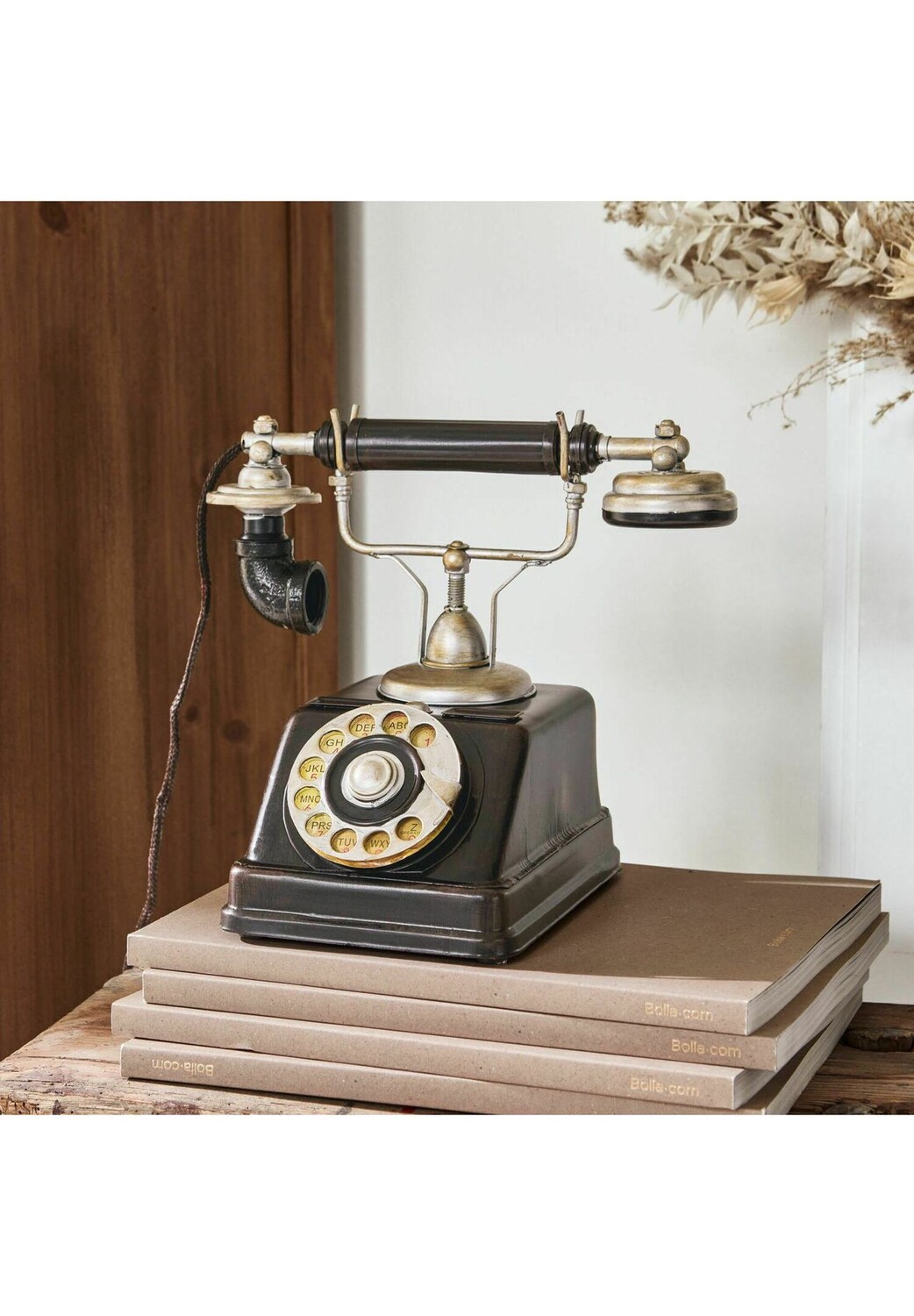 Описание предмета: Высококачественный декоративный предмет с ностальгическим шармом. Произведение, напоминающее о прошлых десятилетиях и старых добрых временах. Идеально подходит для интерьеров в стиле шебби-шик и антиквариата. Глядя на этот стильный винтажный телефон, который, однако, можно использовать только в чисто декоративных целях, почти ощущаешь себя в небольшом путешествии назад во времени. Однако это кажется вполне реальным. Вы еще помните времена, когда еще не было смартфонов и тому подобного, когда вы просто набирали номер по старинке с помощью дискового набора? Тщательно изготовленный и изящно спроектированный телефон привнесет в ваш дом ощущение домашнего уюта из прошлого. Необычайный акцент с изюминкой.