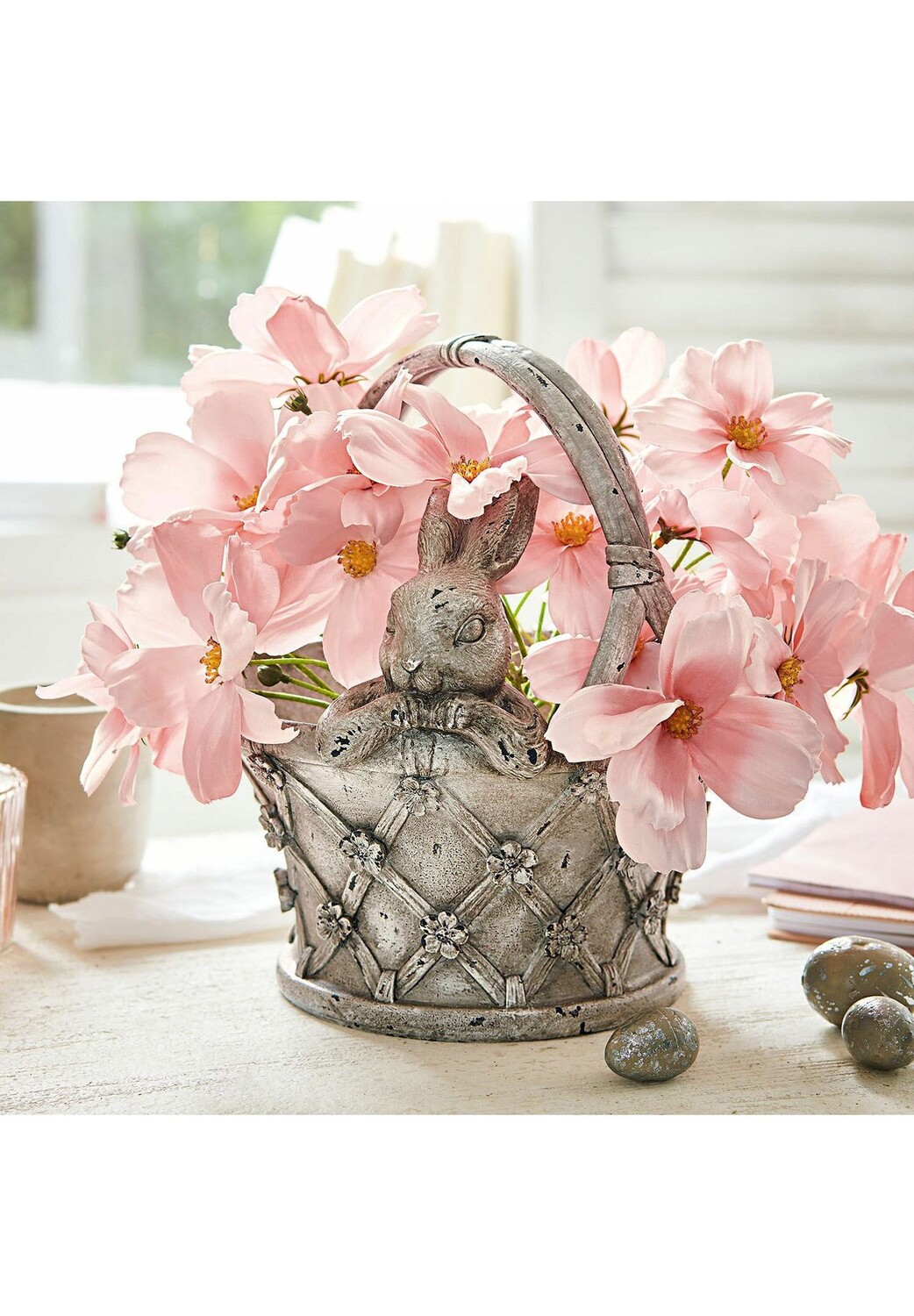 Описание товара: Очень игривый, красивый дизайн с деталями кролика. Ностальгический аксессуар из полирезина с античной отделкой. Идеально подходит для цветов, хранения или Пасхи. Это очаровательное кашпо с ручкой доставит истинное удовольствие всем, кто любит ностальгию. Милый кролик выглядит мило из корзины и просто поднимает вам настроение. В него можно спрятать угощения на Пасху или хранить после него мелочи – нет предела для творчества. Например, вы можете добавить очаровательный акцент в атмосферу шебби-шика, а этот прекрасный дизайн также станет хорошим выбором в качестве подарка.
