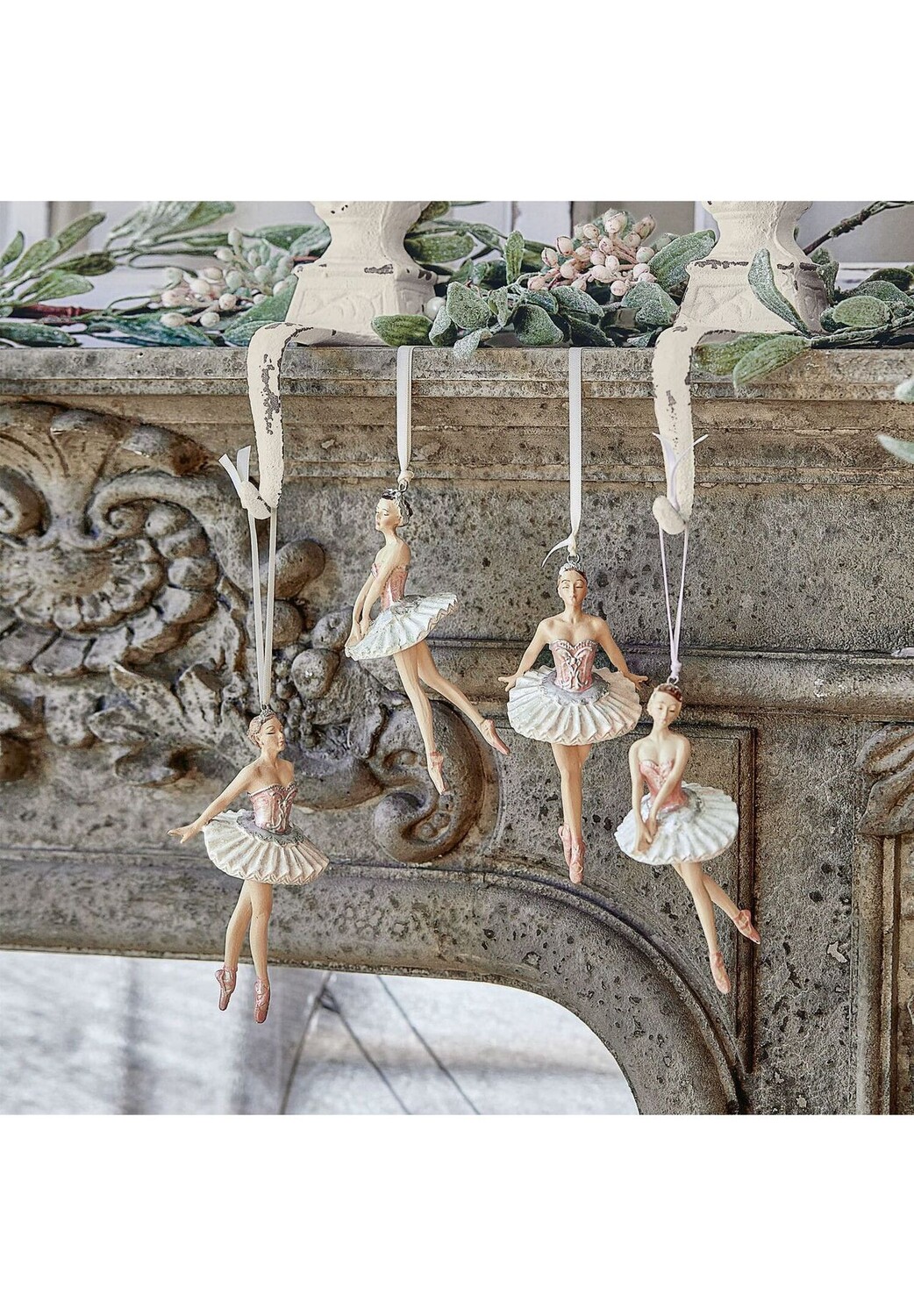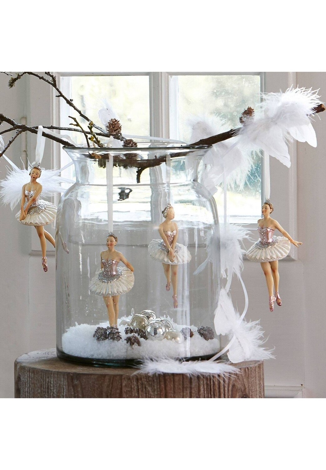 Описание предмета: Очаровательный ностальгический образ в духе 40-х годов. Балетки, созданные с вниманием к деталям и тщательно расписанные вручную. Блестящие детали украшают костюм. Четыре прекрасных балерины декоративно совершают пируэты в воздухе на вашей елке. В наборе четыре фигурки, каждая в двух разных позах. Мечтательное выражение лица и великолепно детализированный костюм порадуют любого, кто любит романтические аксессуары. От лица до украшений корсажа, тюлевой юбки и мерцающих балеток — это просто маленькие шедевры.