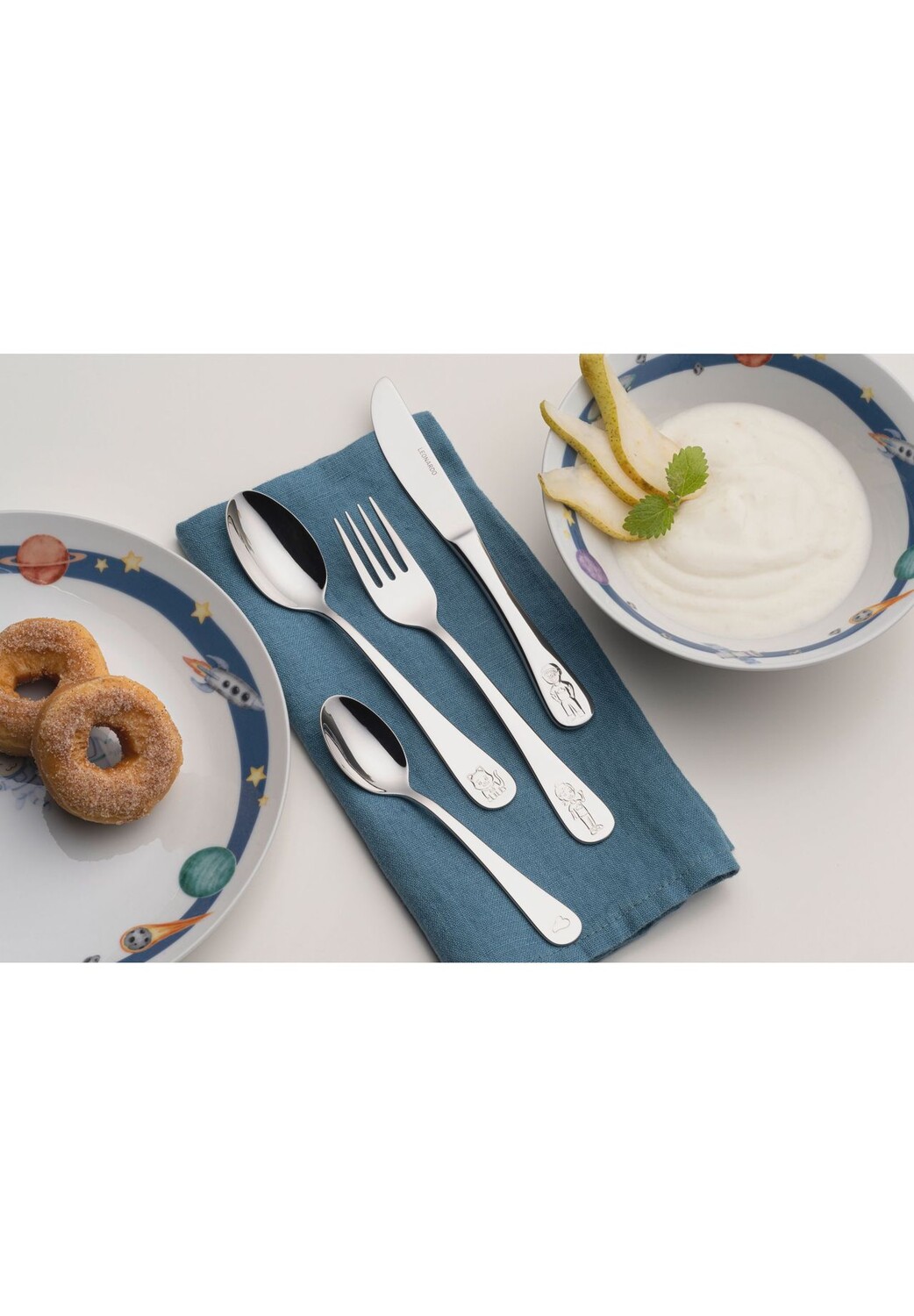 Описание предмета. Эти замечательные детские столовые приборы сделают ваш обеденный стол настоящим украшением вашего обеденного стола. С декоративным принтом. Пусть эти детские столовые приборы гармоничной формы перенесут вас в мечтательный мир, полный эмоций. Обладая чувством прекрасного, Леонардо вносит еще больше разнообразия в вашу повседневную жизнь. Эти столовые приборы можно мыть в посудомоечной машине. Здесь вы получаете набор из 4 предметов. Лучше больше не ждать. Вы тоже можете насладиться этими красивыми серебряными детскими столовыми приборами. Также отличный выбор в качестве подарка.