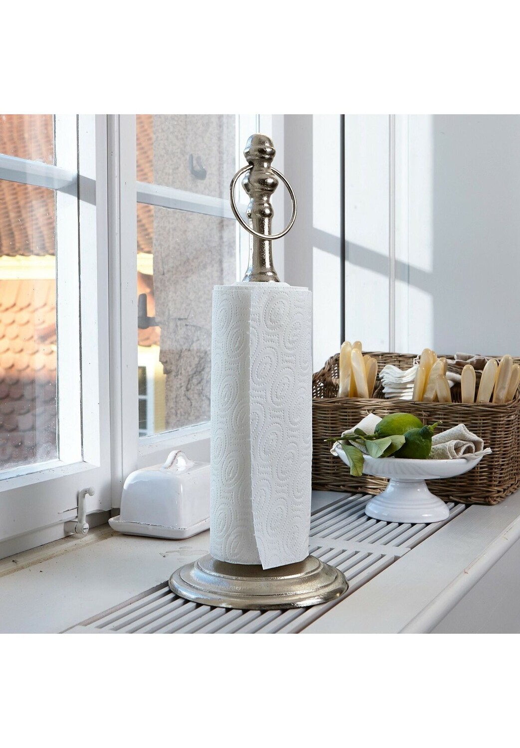Описание предмета: Изготовлен из чистого алюминия и покрыт античной серебряной отделкой. Привлекательный держатель для кухонных рулонов впечатляет своей элегантной формой и высококачественной отделкой под старинное серебро. Он изготовлен из чистого алюминия и оснащен очаровательным кольцом для переноски.