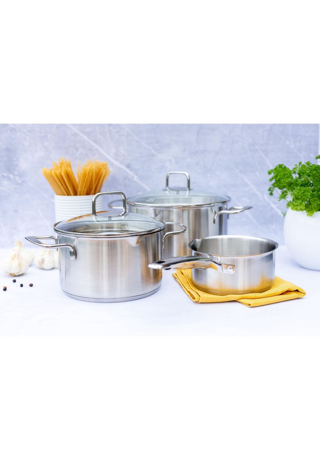 Описание предмета: приготовление пищи с использованием высококачественной и, прежде всего, продуманной посуды значительно увеличивает удовольствие. Серия кастрюль Sanvito не оставляет желать лучшего, когда дело касается умных решений для приготовления пищи на плите. Кастрюли из нержавеющей стали оснащены практичным носиком и литровой шкалой. Отмерять кулинарную жидкость перед началом приготовления и процеживать ее после окончания процесса приготовления можно без каких-либо дополнительных инструментов. Прочная стеклянная крышка позволяет в любой момент увидеть, что происходит внутри кастрюли. Кастрюли и сотейник подходят для электрических, газовых и индукционных плит. Этот предмет состоит из крышки и кастрюли следующих размеров: Ширина: 32 см. Диаметр основания: 18,5 см. Внутренний диаметр: 20 см. Высота: 11,9 см. Объем: 3,0 литра.