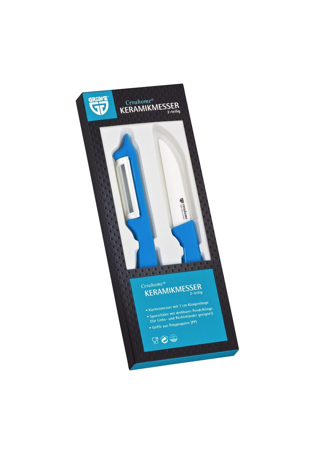 Керамический набор из 2 ножей + овощечистка Gräwe, blau