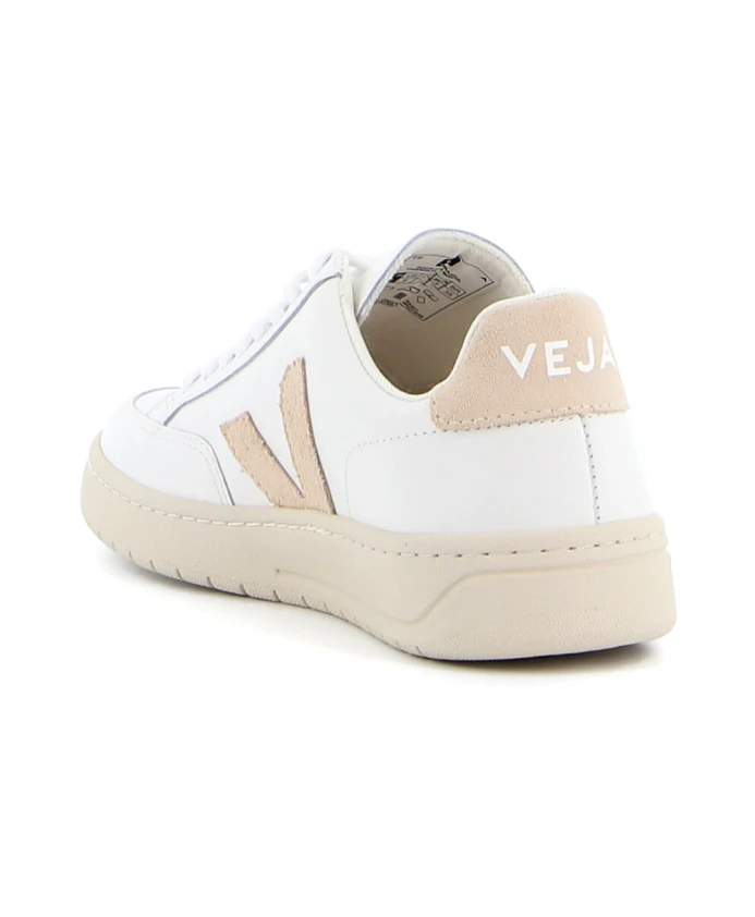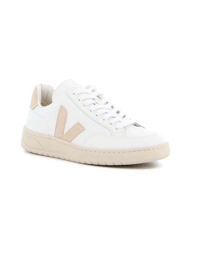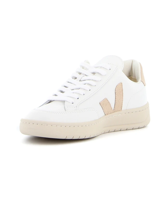 Сделайте свои кроссовки еще более ярким с этими белыми низкими кроссовками V-12 от Veja. Эти кроссовки из замши имеют бежевый логотип V, плоскую резиновую подошву и шнуровку. Бежевые детали и логотип VEJA на спине придают этому классическому дизайну изысканность.