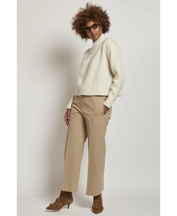 Обновите свой гардероб бежевыми широкими брюками от Studioicholson. Эти брюки мужского кроя идеально подходят для женщин, следящих за модой. Изготовленные из смеси хлопка, шерсти и полиамида, они обеспечивают комфорт и стиль. На модели размер 0, рост 1,80 м. Эти универсальные брюки придадут вашему образу изысканности.