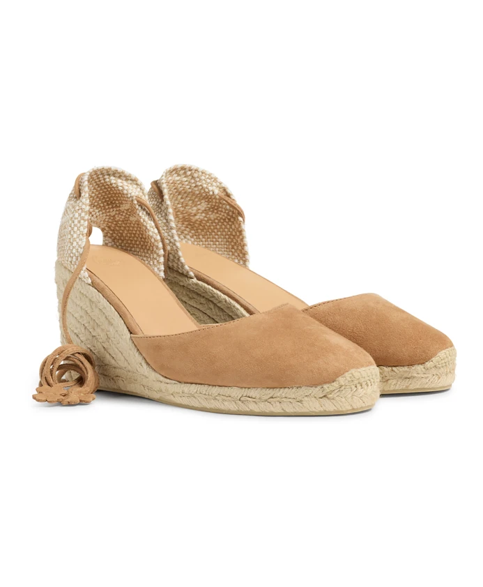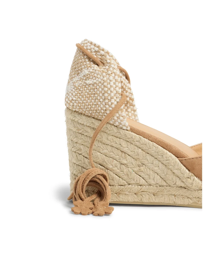 Подчеркните свой стиль с помощью этих темно-бежевых туфель на танкетке Castañer Carina. Эти замшевые туфли на танкетке, изготовленные вручную в Испании, имеют закругленный носок, плетеный каблук и шнуровку на щиколотке. Подошва из вулканизированной резины и внутренняя часть из овчины обеспечивают комфорт и долговечность. Общая высота: 9 см; Высота плато: 2 см; Высота каблука на танкетке: 7 см.