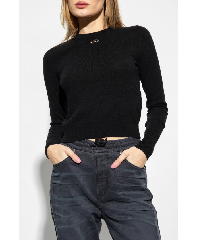 Черный свитер с круглым вырезом M-AREESAX от Diesel. Модель выполнена из смеси шерсти и кашемира и имеет вырез с вышитым логотипом спереди, длинные рукава и ребристую отделку по краям. Размеры модели: Рост: 176 см. Грудь: 85 см. Талия: 60 см. Бедра: 89 см. Размер модели: XS