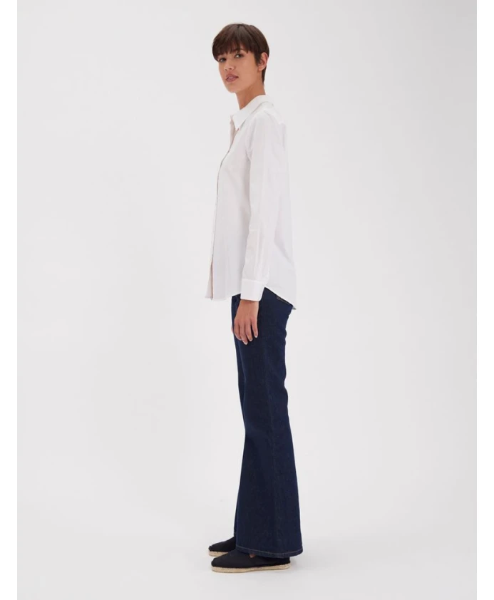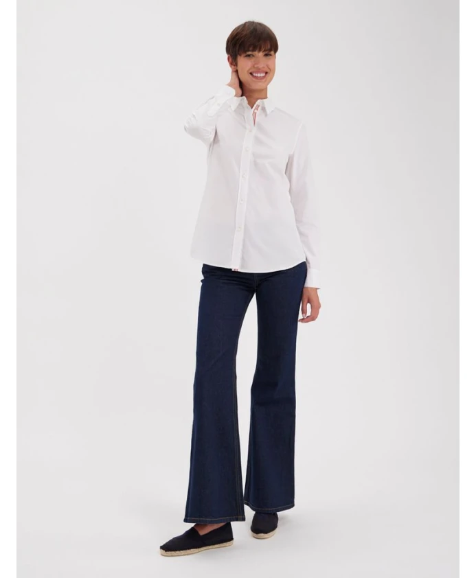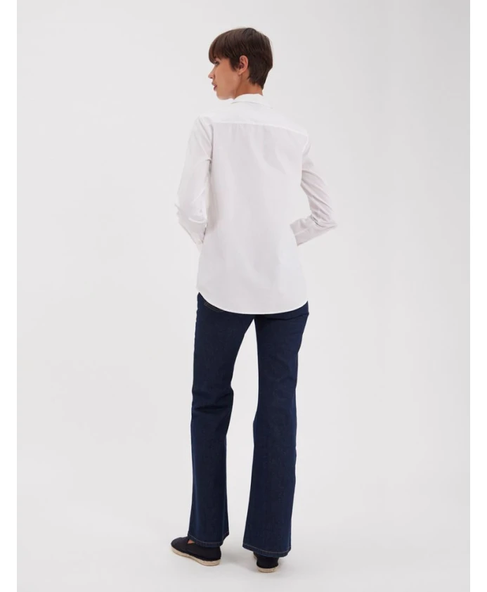 Рубашка Martin – обязательный предмет гардероба каждой парижанки и любимой вещи Инес... Неподвластная времени версия из белого хлопка, слегка сшитая на заказ, с характерной сине-бело-красной каймой. Белая рубашка Martin сразу становится стильной. Смело выбирайте эту рубашку летом 2023 года! Посадка очень индивидуальна, поэтому, если вы разрываетесь между размерами, выберите размер на следующий больше. Состав: 100 % хлопок. Облегающий крой, воротник с вышивкой. Фирменная отделка под петлицами. Натуральные перламутровые пуговицы. Двойная кокетка. Загнутая спинка в пройме и на кокетке капюшона. Простые закругленные манжеты. Разработано в Париже. Сделано в Европе.