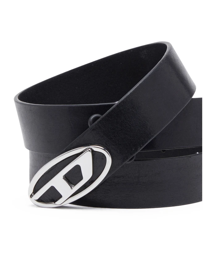 Двусторонний кожаный ремень с овальным логотипом в форме буквы D Diesel, черный