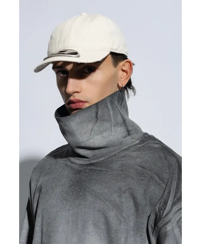 Кремовая бейсболка C-BEAST-A1 от Diesel. Изделие из хлопка имеет графический рисунок с винтажным эффектом, потертые детали и аппликацию с логотипом.