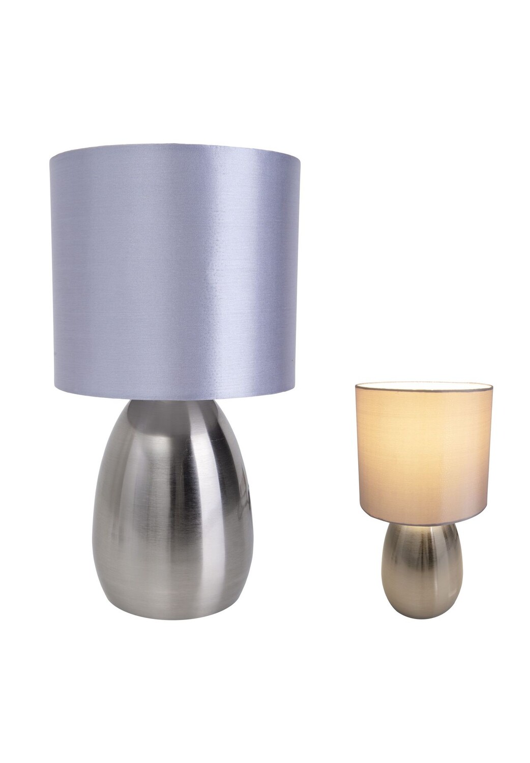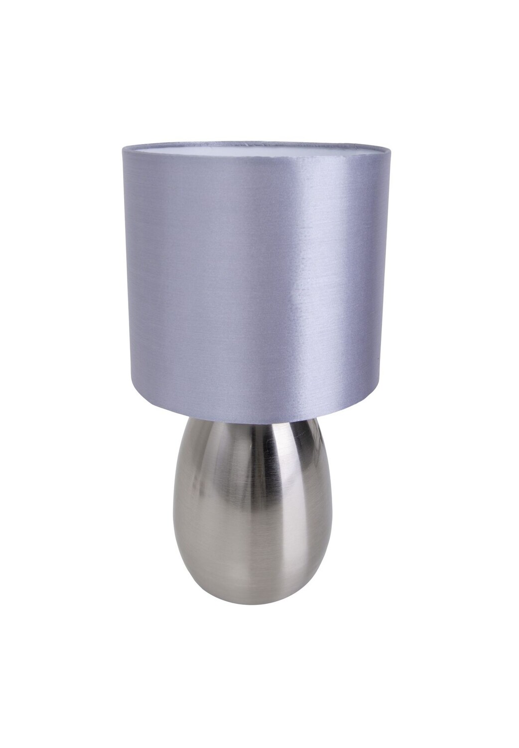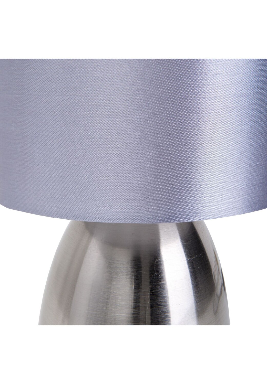 Особенности: 1x E14 макс. 40 Вт Искл. Размеры лампы IP20/SKII ок. : В: 33 см, оттенок ок. : В: 16 см / Г: 17,5 см — серая основа ок. : В: 18 см / Г: 10,5 см - блестящая сталь. Материал: металл, текстиль, ПВХ/АБС. Цвет: блестящая сталь/серый. Подводящий шнур: 150 см, черный. Вкл. Тумблер