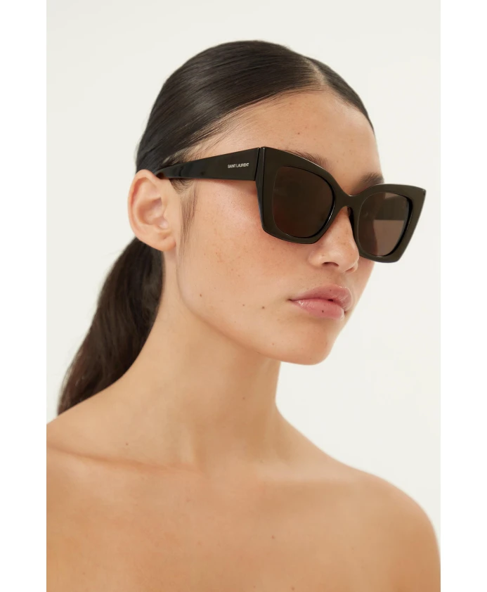 Подчеркните свой стиль с помощью этих женских солнцезащитных очков Saint Laurent. Эти солнцезащитные очки с женственным дизайном «кошачий глаз» и острыми углами излучают элегантность. Преувеличенная игра объема спереди и на дужках придает этому стилю неповторимый оттенок. Логотип выгравирован и покрыт эмалью, что свидетельствует о внимании бренда к деталям.
