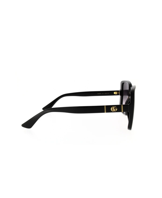 Подчеркните свой стиль с помощью этих солнцезащитных очков в черной оправе от Gucci. Квадратная форма, заушники и оправа из глянцевого черного ацетата, а также серые тонированные линзы со 100 % защитой от ультрафиолета. Блестящий золотистый металлический логотип в виде буквы G добавляет роскоши. Размеры: Перемычка: 20 мм, Дужка: 145 мм, Диаметр линзы: 56 мм.