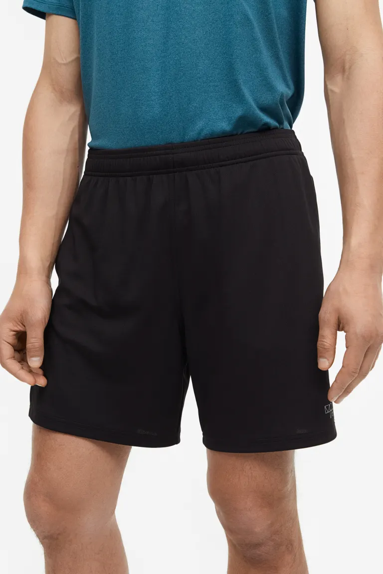 Шорты из быстросохнущей функциональной ткани с хорошей воздухопроницаемостью отводят влагу и помогают сохранять сухость и прохладу во время тренировки. Эластичный пояс со скрытой кулиской. Карманы в боковых швах и разрезы по бокам на кромках.