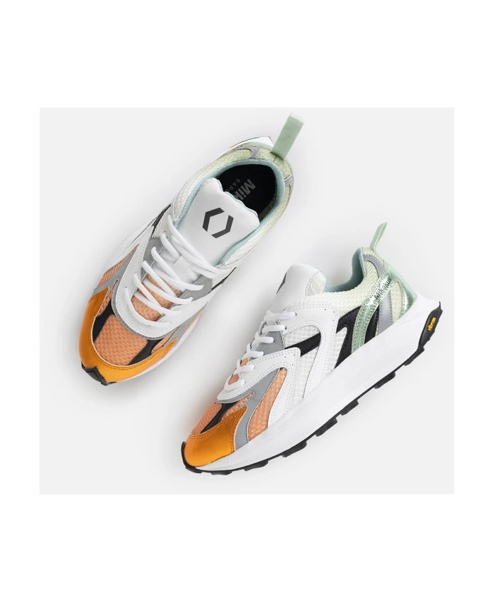 Отправьтесь в 2000-е с Y2K Dusk! Эти кроссовки от Mikakus Barcelona изготовлены из очаровательной сетчатой ткани зеленого, белого и оранжевого цвета с элементами из высококачественной черной и белой кожи, которые определяют уникальный стиль. Блестящая внешняя кожа зеленого и оранжевого цветов придает обуви яркость. В комплекте подошва и стелька Vibram для максимального комфорта при каждом шаге. Выделитесь и подчеркните свой стиль с помощью Y2K Dusk!