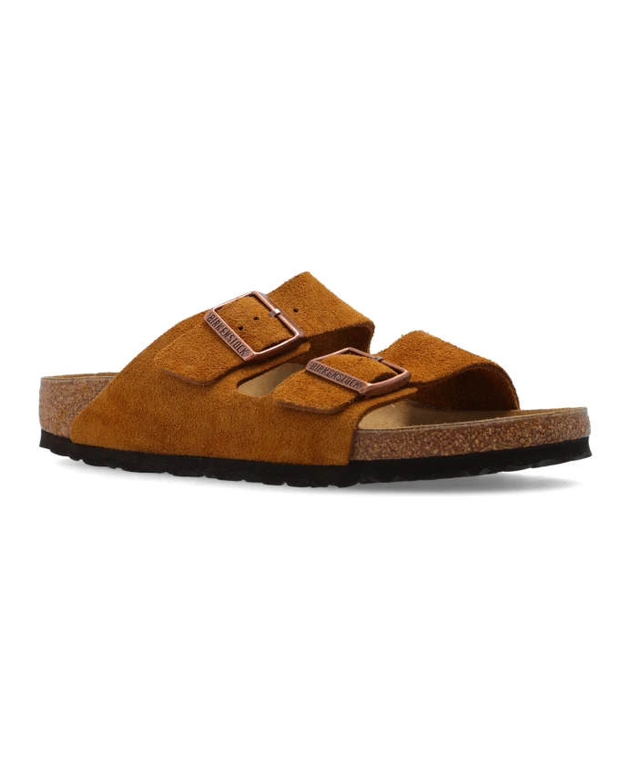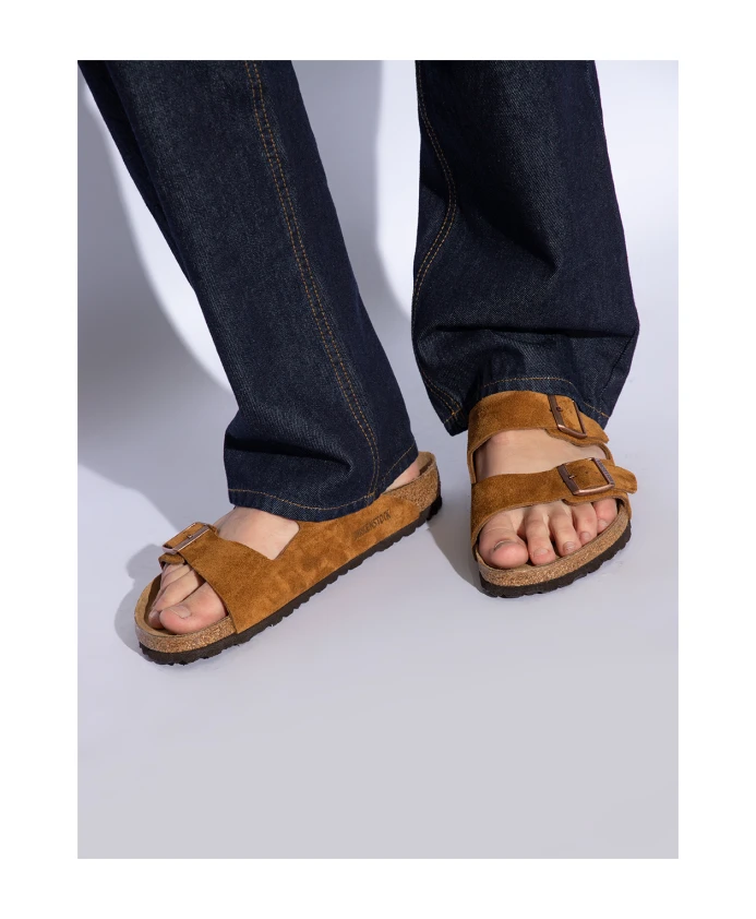 Коричневые сандалии Arizona BS от Birkenstock. Эта пара, изготовленная из замши, имеет ремешки с выгравированными пряжками цвета старинного золота, тисненый логотип сбоку, стельку из пробкового латекса анатомической формы и коричнево-черную подошву из натуральной пробки и пены EVA. Высота подошвы: 2 см. Высота подошвы в самом высоком положении. Пятно: 3,5 см