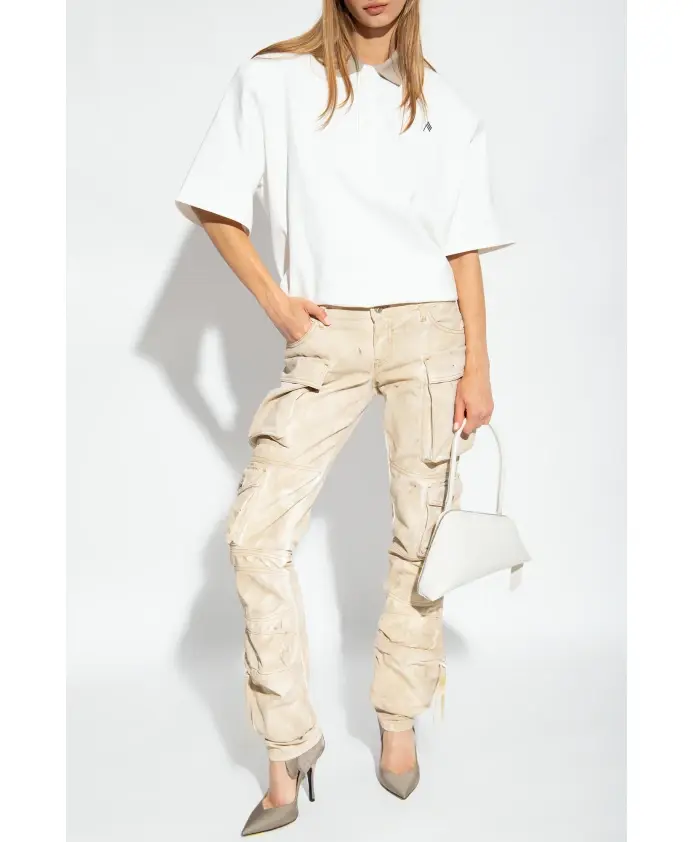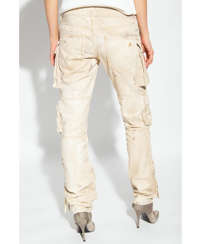 Выцветшие кремовые джинсы-карго Essie от The Attico. Застегивается на пуговицы и молнии. Эта пара имеет застежку на молнию и пуговицы, винтажный эффект, вышивку логотипа сзади, множество карманов и зауженные брючины. Размеры модели Рост: 176 см. Обхват груди: 85 см. Талия: 60 см. Обхват бедер: 89 см. На модели размер одежды: 27.