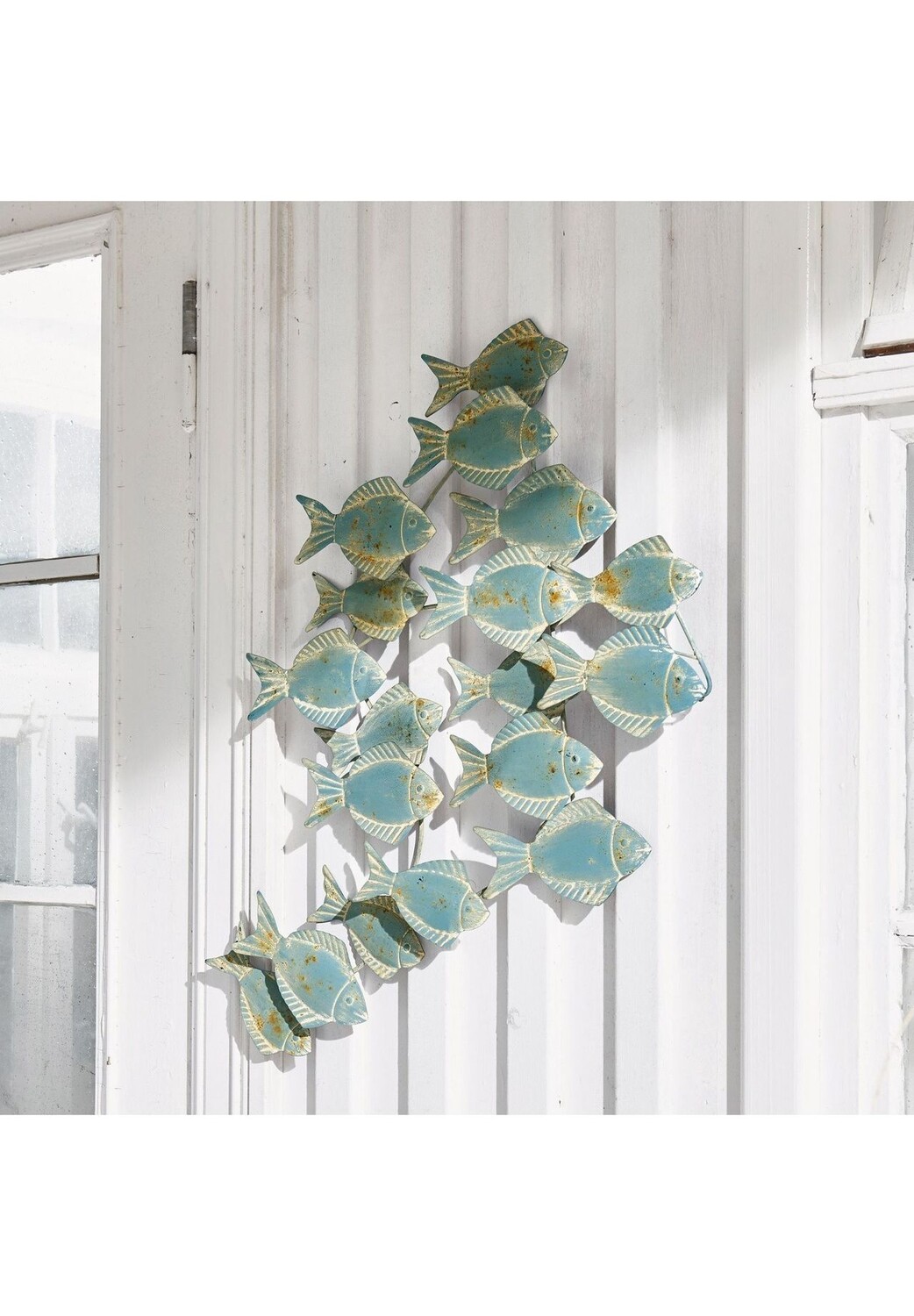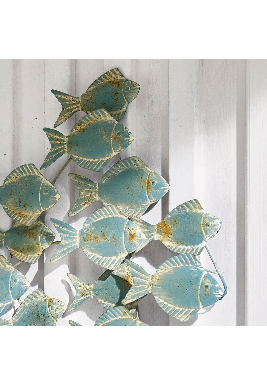 Описание предмета: Декоративный косяк рыб создаст морской колорит в любой комнате. Изготовлен из железа. Повесить. Художественный дизайн. Принесите домой ощущение летнего отдыха на море. Художественный орнамент - это действительно особый вид украшения стен. Множество волшебных рыбок напоминают голубую гладь океана и создают стильный акцент в стиле пляжного коттеджа.