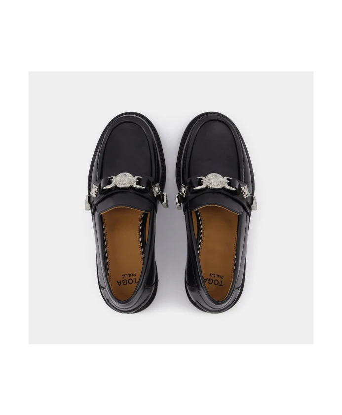 Окунитесь в авангардный стиль с этими лоферами Toga Pulla Polido. Эта черная пара излучает атмосферу вестерна, которая нам просто нравится. Эти лоферы из гладкой телячьей кожи имеют каблук высотой 5 см и подошву на платформе высотой 1 см для дополнительной высоты. Конструкция без шнуровки и закругленная форма носка делают их легкими и удобными в ношении. Резиновая подошва и кожаная подкладка обеспечивают долговечность и качество. Идеально подходит для следящей за модой женщины. Дополните свой образ этими лоферами черного цвета Polido. Идеально подходит. Детали ткани: AJ1041 – ЧЕРНОЕ ПОЛИДО.