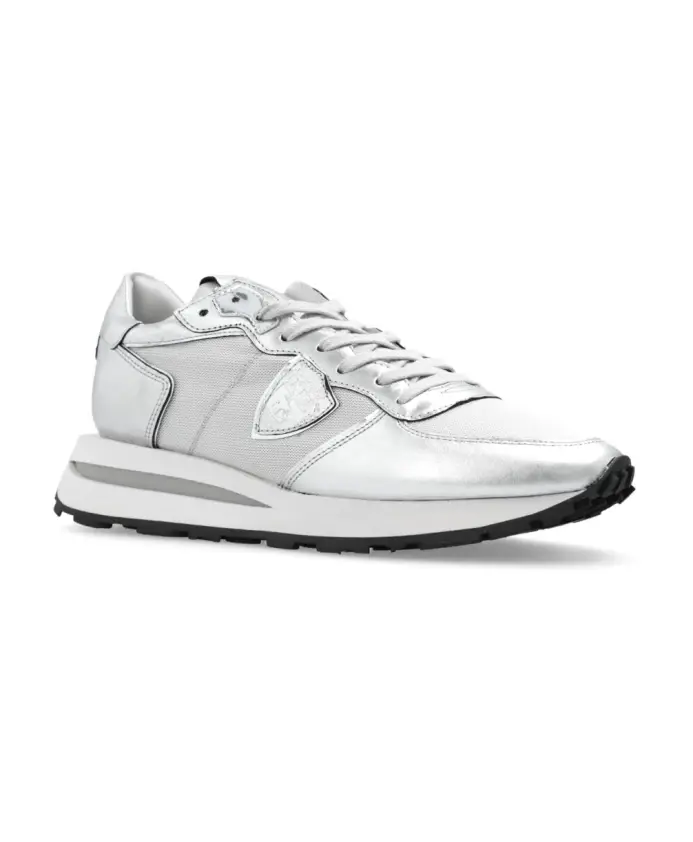 Обновите свой стиль с помощью этих серебристых низких кроссовок Philippe Model Tropez Haute. Эти кроссовки, созданные специально для женщин, имеют металлические вставки и изготовлены из комбинации технической ткани и кожи. Сверхлегкая и гибкая подошва из микропористой резины изготовлена вручную и оснащена контрастной 3D-стелькой. Серебристый задник гордо украшает логотип бренда, а тисненый щиток сбоку придает модели изысканный вид. Эти кроссовки также имеют закругленный носок, нашивку с логотипом на язычке, плоские шнурки и съемную стельку для дополнительного комфорта. Эти кроссовки с высотой подошвы 5,5 см выглядят стильно и практично. Материал верха: 100% кожа. Подошва: резина. Подкладка: хлопок, кожа.