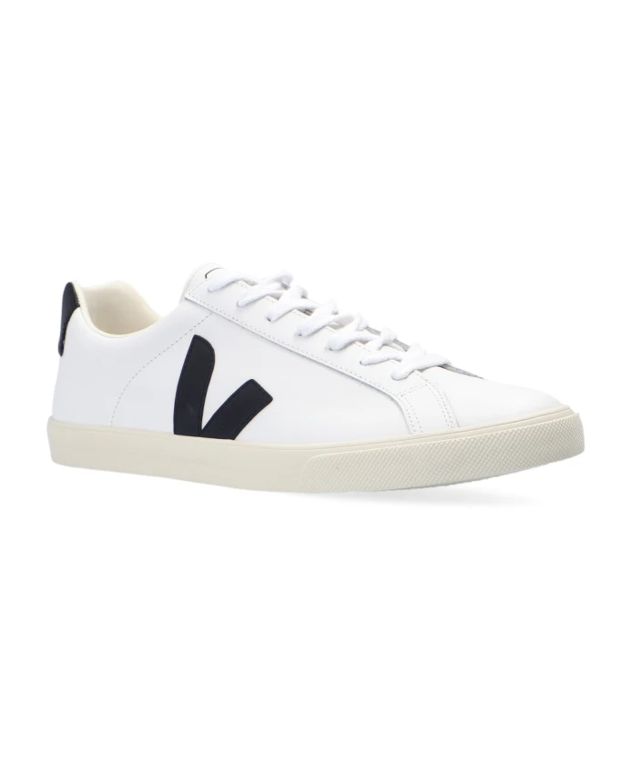 Белые кроссовки Esplar от Veja. Эта модель на шнуровке, выполненная из кожи, имеет черную нашивку с логотипом V и кремовую резиновую подошву. Назван в честь бразильской неправительственной организации, с которой лейбл сотрудничает с 2005 года. ESPLAR (Ассоциация сельского планирования и консультирования) поддерживает органический и семейный бизнес в регионе Нордесте. Высота подошвы: 2,5 см.
