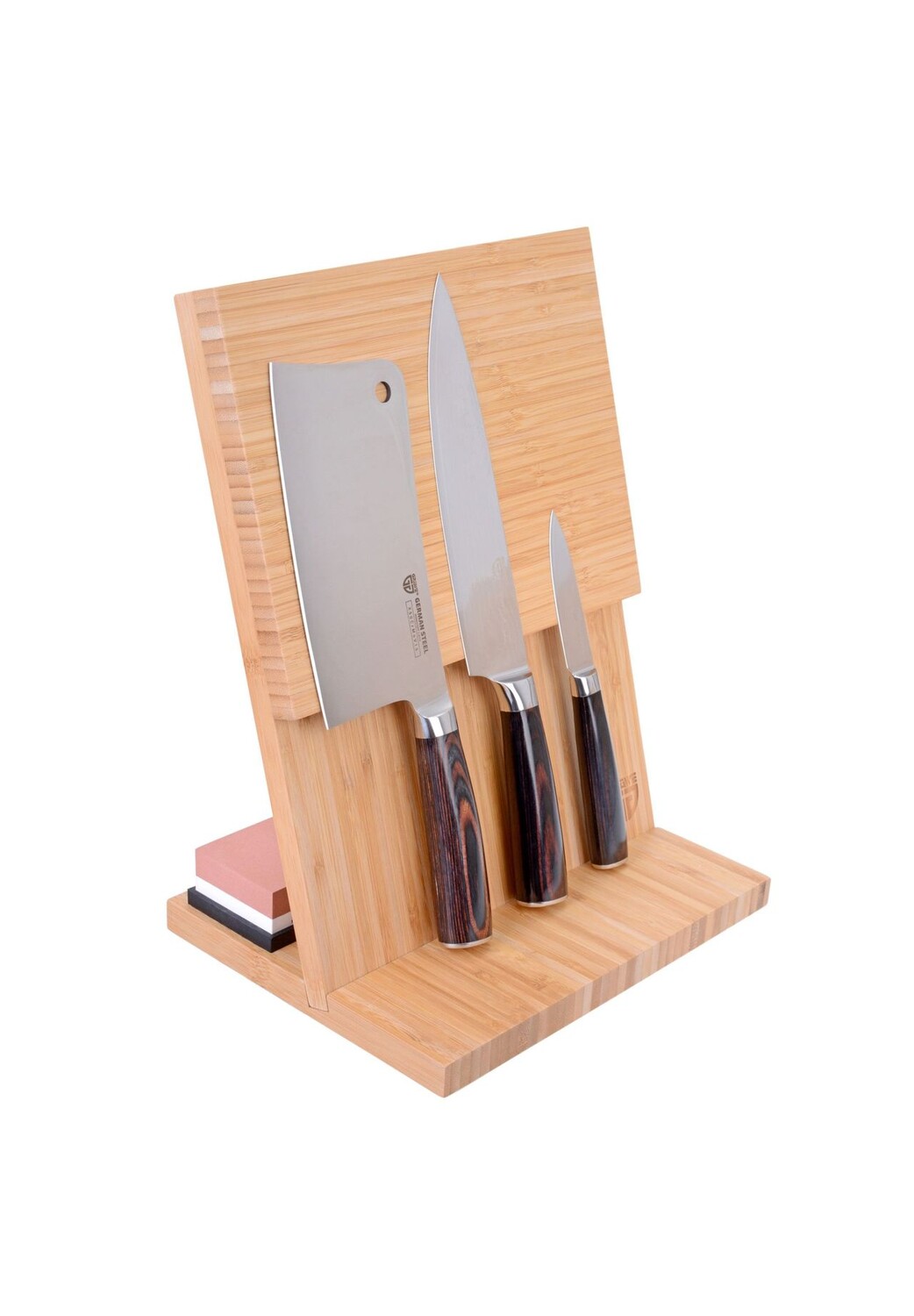Описание товара: Эксклюзивный бамбуковый блок для ножей используется для удобного хранения магнитных ножей, которые удерживаются встроенными магнитами на передней панели. В комплект поставки входит 1 бамбуковый магнитный держатель для ножей. Размеры: Д x Ш x В примерно 26 x 20 x 35 см, вес примерно 2,24 кг.