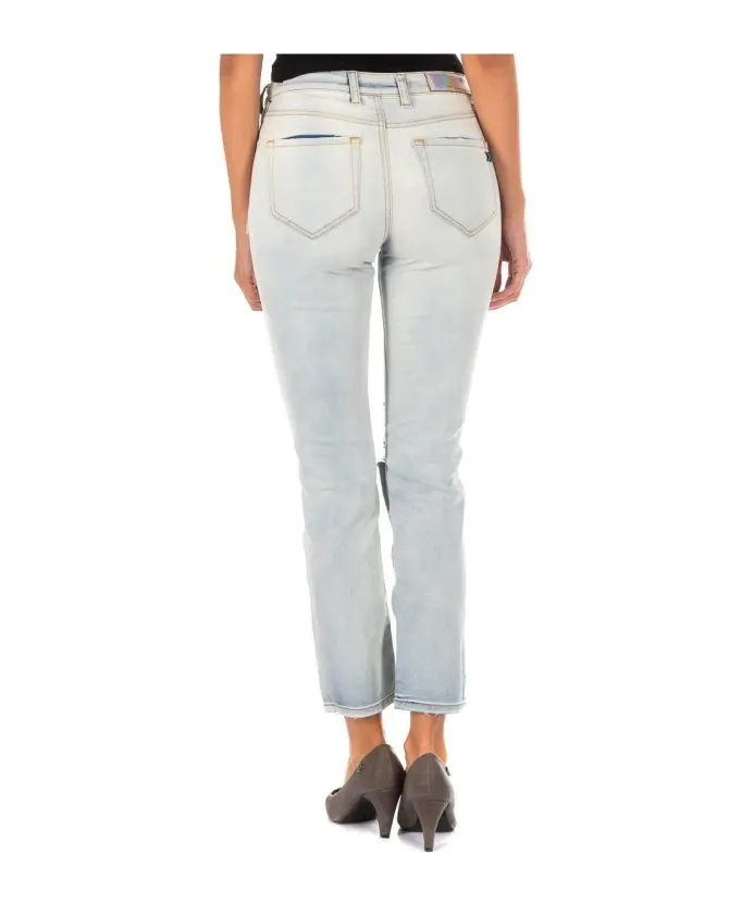 Укороченные женские джинсы MET синего цвета. Застежка на молнию и пуговицу спереди. Шлевки для ремня на талии. Два открытых кармана и мини-карман спереди. Сзади два открытых кармана. Пластиковая этикетка и название бренда сбоку на поясе сзади. Прямой крой по краю. Тональная видимая строчка. Состав: 98% хлопок-2% эластан. Инструкции по стирке: - Стирать при температуре максимум 40°C. - Гладить при средней температуре, макс. - Подходит для сушки в барабане. - Не отбеливать. - Не подвергать химической чистке.
