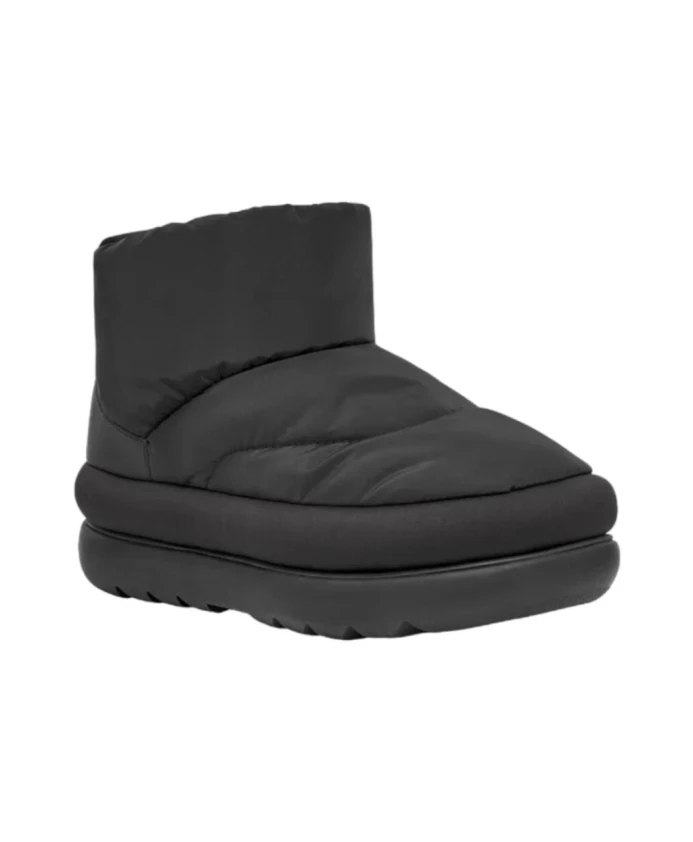 Сохраняйте тепло и стильность этой зимой с этими ультра-уютными черными женскими ботинками UGG Maxi Mini. Водонепроницаемый текстильный верх гарантирует, что ваши ноги останутся сухими, а петля для подтягивания сзади и небольшой логотип придадут нотку изысканности. Эти ботинки с длиной голенища 12,5 см идеально подходят для любых зимних приключений. Изготовлено из высококачественных материалов, включая этиленвинилацетат, резину и подкладку из 80 % переработанной шерсти и 20 % лиоцелла Vamp.