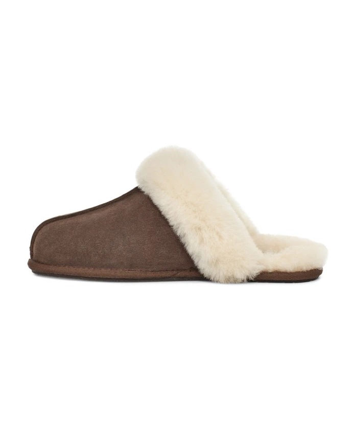 Тапочки UGG Scuffette II – это идеальное сочетание комфорта и стиля. Эти тапочки, изготовленные из классической замши, с внутренней стороны из мягкой шерсти UGGpure и воротником из овчины, идеально подойдут каждой женщине. Водоотталкивающий дизайн и резиновая подошва с пробкой и пеной EVA делают их прочными и практичными. Эти тапочки с высотой обуви 9 см и высотой подошвы 1,5 см удобны и стильны. Код стиля продукта: 1106872. Детали ткани: 100% овчина.