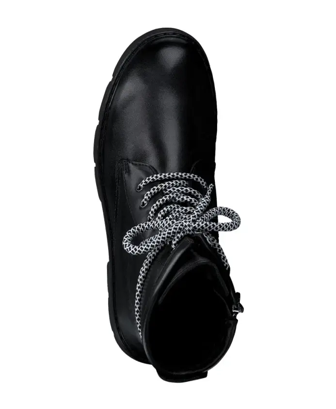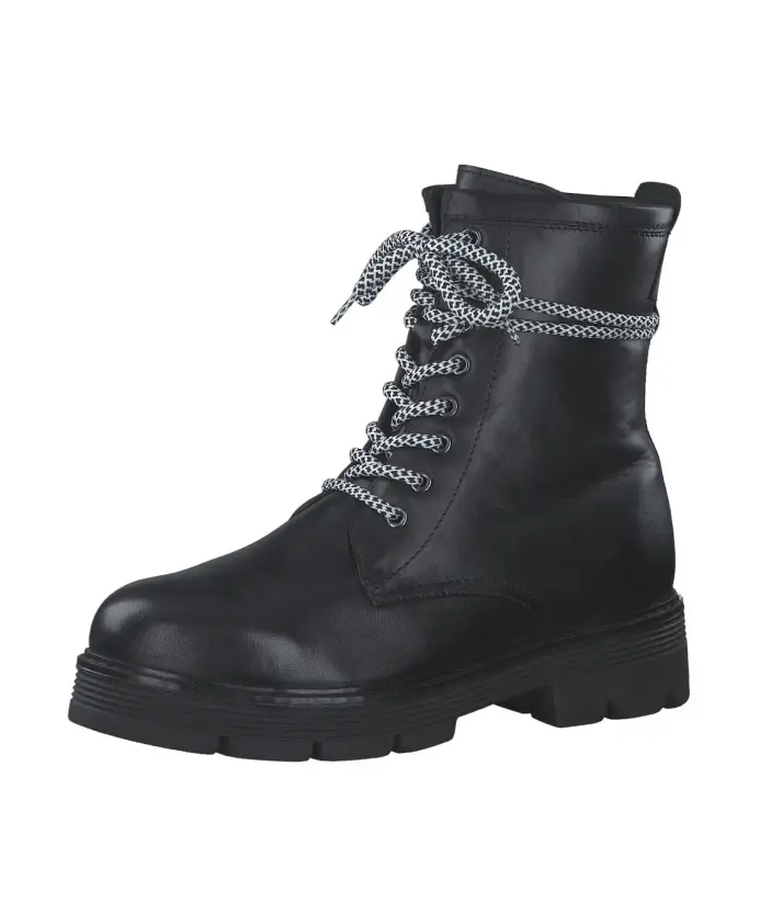 Откройте для себя женские ботильоны Marco Tozzi на шнуровке классического черного цвета. Эти ботильоны с кожаным верхом и уютной шерстяной подкладкой стильны и удобны. Эти ботильоны на шнуровке, идеально подходящие для любого случая, станут обязательным элементом вашей коллекции обуви. продукт