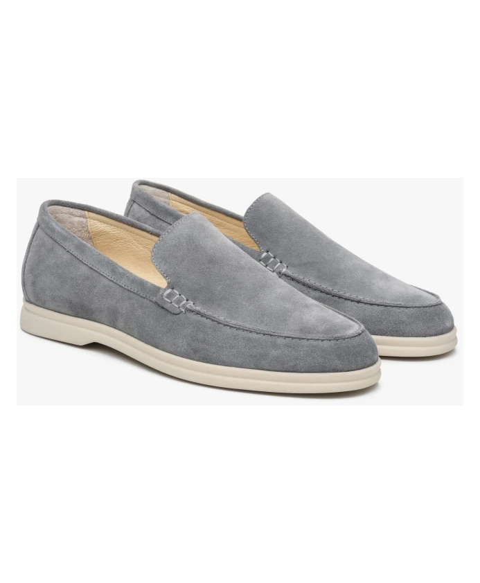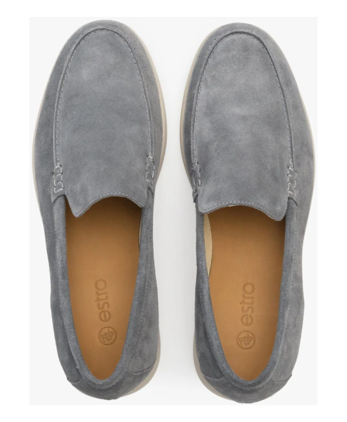 Почувствуйте мягкость итальянской замши и устойчивость резиновой подошвы под ногами в серых замшевых мужских лоферах Estro. Эта элегантная и повседневная обувь сочетает в себе комфорт и элегантность для современного мужчины.
