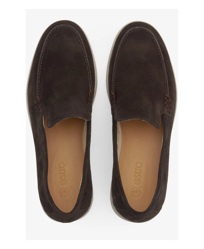 Подчеркните свой утонченный стиль с помощью мужских лоферов Estros из велюра коричневого цвета. Эти слипоны идеально подходят для повседневного или нарядного образа.