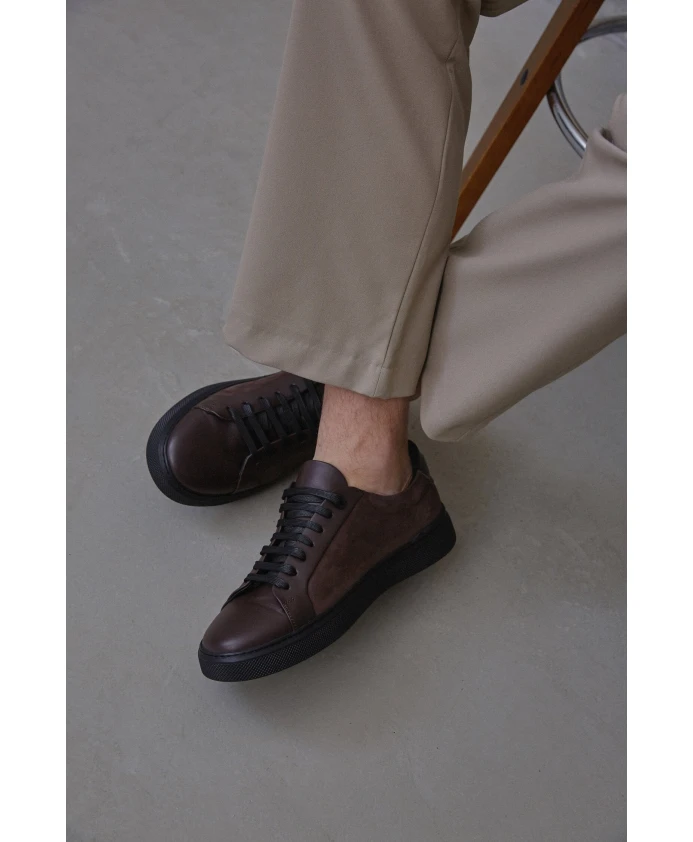 Стильные кроссовки из кожи и замши Estro, коричневый