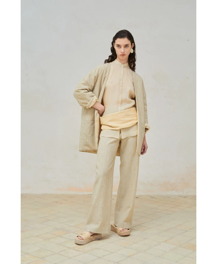 Обновите свой гардероб рубашкой Jules от Cortana. Эта женская рубашка из рами имеет воротник-стойку, рукава-кимоно длиной три четверти и пуговицы корозо в тон спереди. Немного более длинная спинка придает современный вид. Волокно рами, известное своей прочностью и шелковистым блеском, является одним из старейших видов текстиля, для которого требуется меньше воды и пестицидов, чем для других культур. Волокна рами Cortana ткутся традиционными методами, что приводит к небольшим различиям в толщине, что подчеркивает уникальное очарование каждого изделия. Откройте для себя вневременную элегантность Рами с помощью Кортаны.