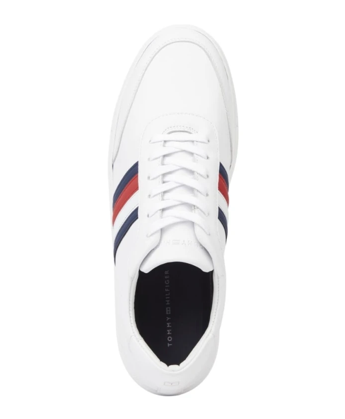 Представляем мужские кроссовки Tommy Hilfiger из белой кожи. Эти кроссовки изготовлены из 100% кожи и сочетают в себе стиль и комфорт. Резиновая подошва обеспечивает отличное сцепление, что делает их идеальными для повседневного использования. Обновите свою коллекцию обуви этими стильными и универсальными кроссовками. продукт