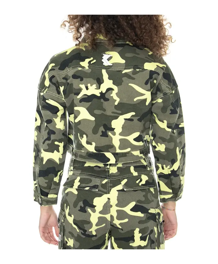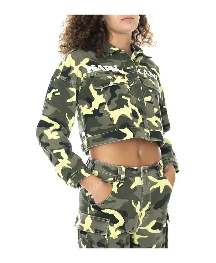 Представляем женскую джинсовую куртку Karl Kani из коллекции лета 2020. Эта легкая куртка укороченного кроя, обычного силуэта, с застежкой на пуговицы и камуфляжным рисунком по всей поверхности. Он имеет нагрудные карманы и контрастные детали логотипа. Изготовлен из 100% хлопка для максимального комфорта и стиля.