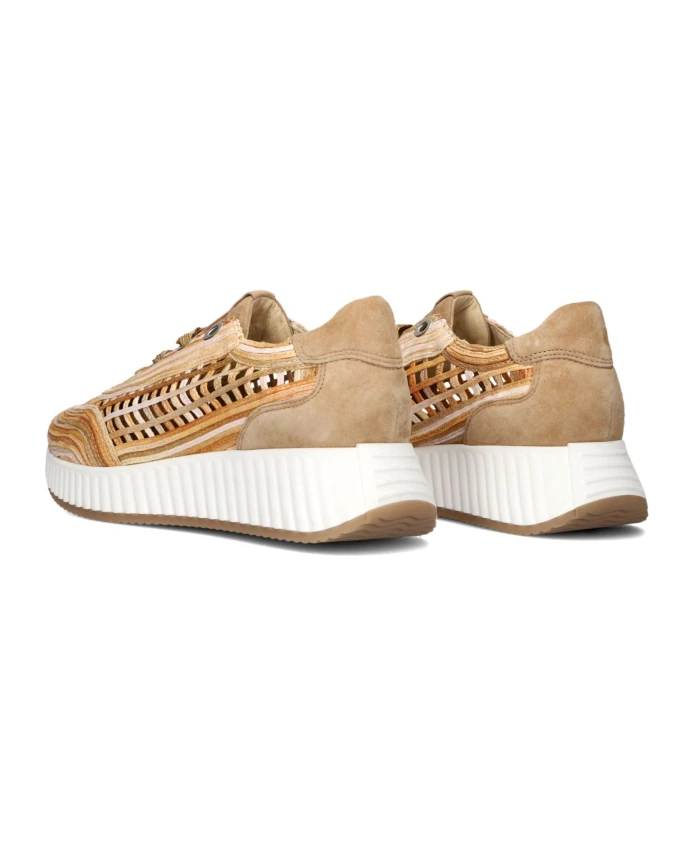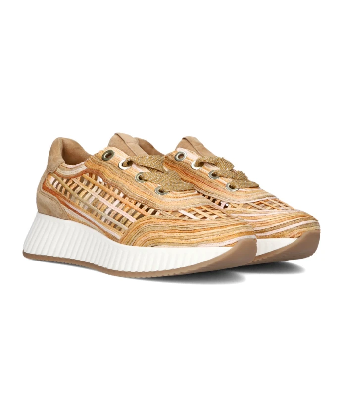 Выйдите на сцену стильно с низкими кедами ARIANA от SOFTWAVES. Эти коричневые кроссовки изготовлены из плетеной веревки четырех разных цветов: светло-розового, оранжевого, коричневого и лососево-розового. Пяточная стойка и язычок выполнены из мягкой коричневой замши. Интересные детали включают отверстия вокруг кроссовок, массивные люверсы и широкие коричневые и бордовые шнурки. Внутренняя подкладка выполнена из кожи и имеет съемную стельку. Резиновая подошва толщиной почти 4 см придает обуви ощущение прохлады. Сочетайте их с модными джинсами и повседневной футболкой, чтобы создать непринужденный образ, или наденьте их под летнее платье, чтобы создать игривый образ. С кроссовками ARIANA вы всегда в тренде и готовы к любому случаю. Позвольте себе сиять и добавьте эти незаменимые кроссовки в свою коллекцию!