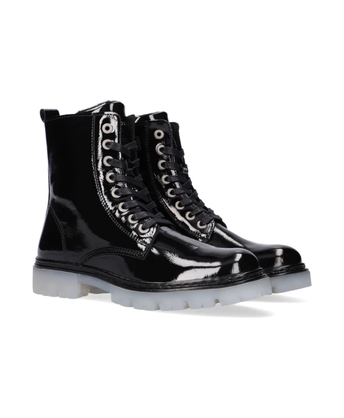 Стильные и в то же время девичьи, эти супер крутые ботинки на шнуровке AJS500 от бренда BULLBOXER. Черная лакированная кожа придает им привлекательный вид. Эти ботинки оснащены плоскими вощеными шнурками, кожаной биркой на язычке и практичной петлей на задней части голенища. Легко надевать и снимать благодаря внутренней молнии и регулируется шнурками. Мягкая текстильная подкладка согреет ваши ноги в холодные зимние дни. Бутсы имеют съемную стельку и профилированную подошву, которая не только круто выглядит, но и обеспечивает хорошее сцепление при игре на улице. Отправьтесь в приключение в этих великолепных ботинках на шнуровке.