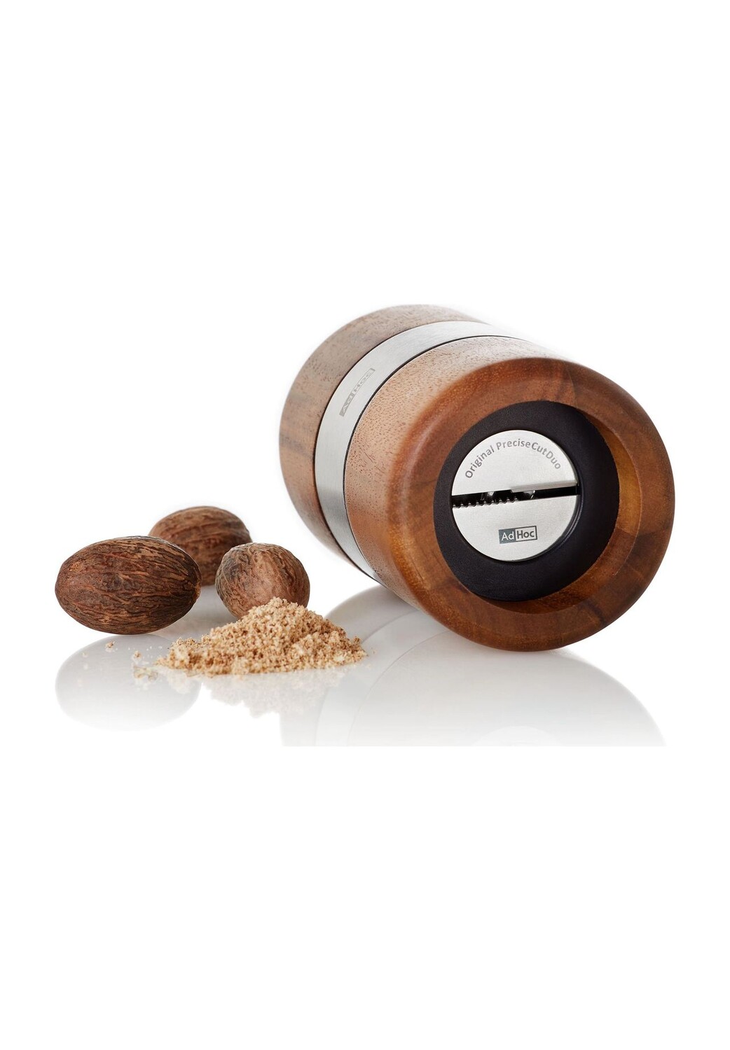 Острый как бритва нож с фототравлением PrecisionCutDuo нарезает мускатный орех и обеспечивает идеальный результат измельчения