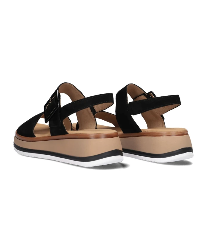 Идите счастливо навстречу солнцу в этих прекрасных сандалиях 744.4 от Gabor. Эта черная модель имеет широкую замшевую полосу в передней части стопы и широкую полосу на подъеме стопы. Он имеет тонкий ремешок на щиколотке для надежной фиксации и застегивается на практичную застежку-липучку, украшенную декоративной пряжкой. Внутренняя подкладка отделана мягкой кожей. Подошва-платформа находится на 3 сантиметра ниже передней части стопы и поднимается на 5 сантиметров сзади. Коричнево-черная межподошва придает стильный вид. Ощутите превосходное сцепление с резиновой подошвой.