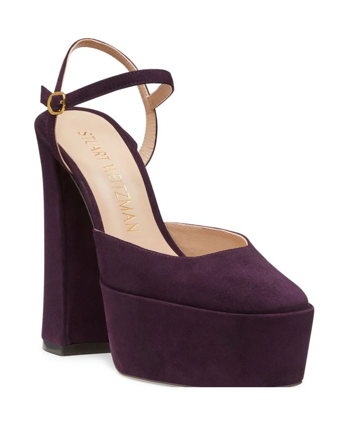 Поднимите свой стиль с этими туфлями на платформе Stuart Weitzman Skyhigh 145. Эффектный блочный каблук высотой 145 мм и массивная платформа делают их гламурными и удобными для носки. Эти туфли-лодочки, изготовленные из роскошной замши, незаменимы для каждой следящей за модой женщины.