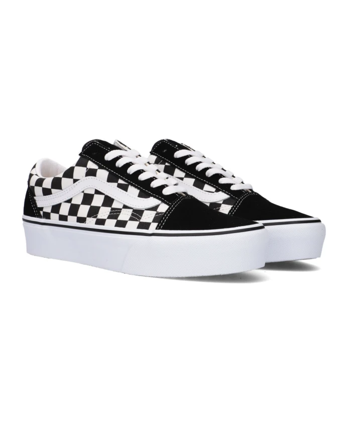 Подчеркните свой стиль с помощью этих модных женских кроссовок Vans OLD SKOOL PLATFORM. Эти черно-белые низкие кроссовки из замши с подошвой на платформе толщиной 3 см и клетчатой средней частью из парусины. Текстильная подкладка и прочная стелька обеспечивают комфорт, а культовая боковая полоса, фирменная этикетка на пятке и стильная подошва на платформе добавляют стильности. Усиленный носок для долговечности, мягкий воротник на щиколотке для поддержки и стелька UltraCush Lite для повышенного комфорта делают эти легкие туфли незаменимыми.