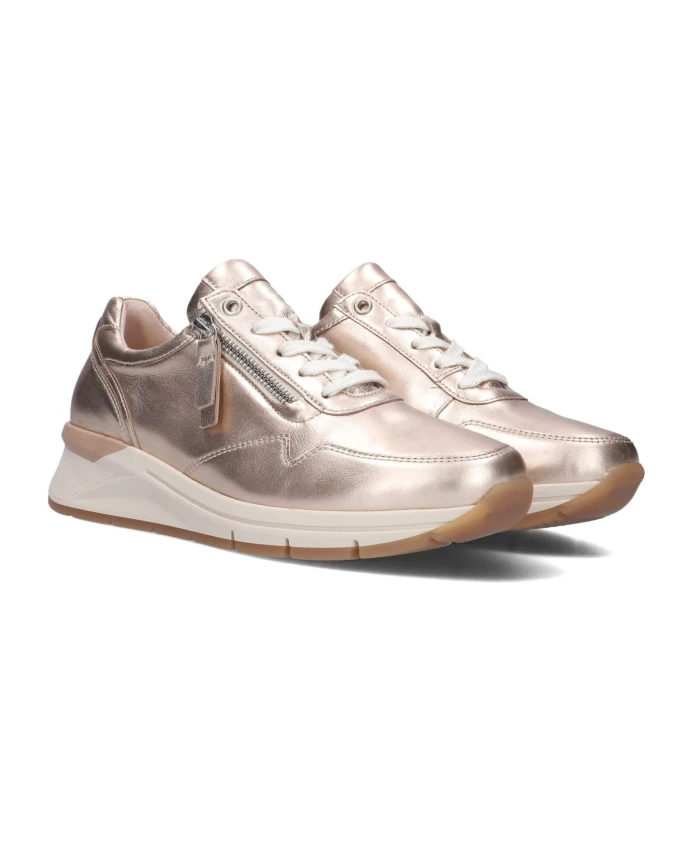 Обновите свой стиль с помощью этих золотых низких кроссовок 587 из мягкой кожи от Gabor. Эти туфли из коллекции Comfort имеют широкую посадку H, обеспечивающую дополнительное пространство в подушечке стопы. Эта модель, выполненная из кожи премиум-класса с яркими акцентами, оснащена резиновым стабилизатором пятки для дополнительной поддержки. Практичная боковая молния позволяет легко надевать и снимать сумку. Подкладка из кожи и мягкого текстиля дополнена мягкой съемной стелькой. Спортивная резиновая подошва украшена золотой акцентной полосой и рельефным каблуком. Цепкий рифленый протектор с глубокими канавками обеспечивает гибкость, а янтарная подошва придает нотку спортивности.