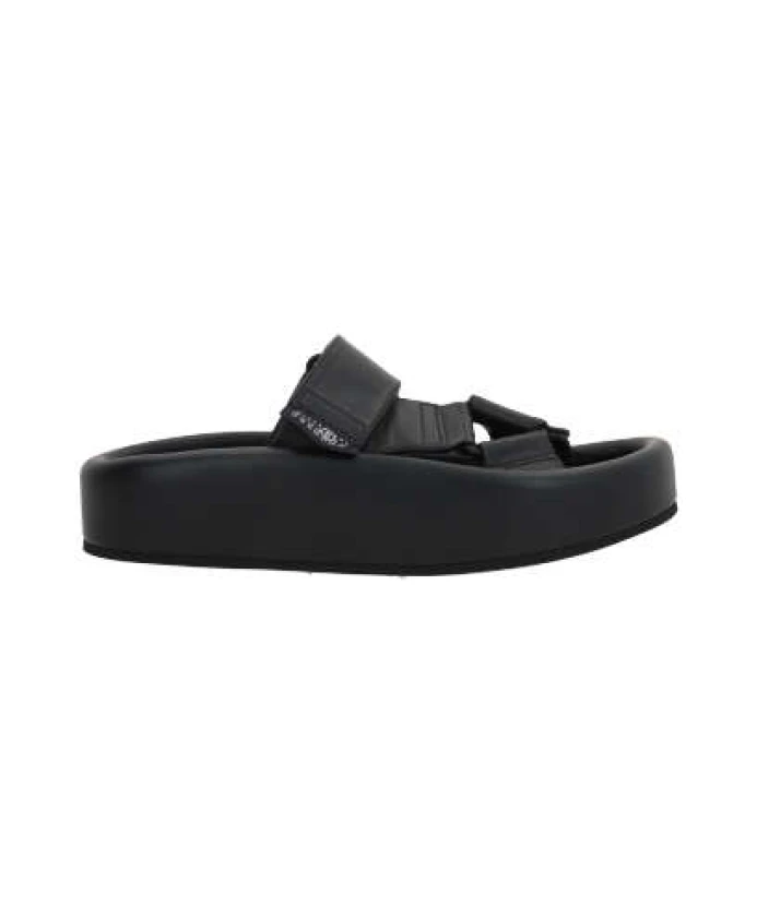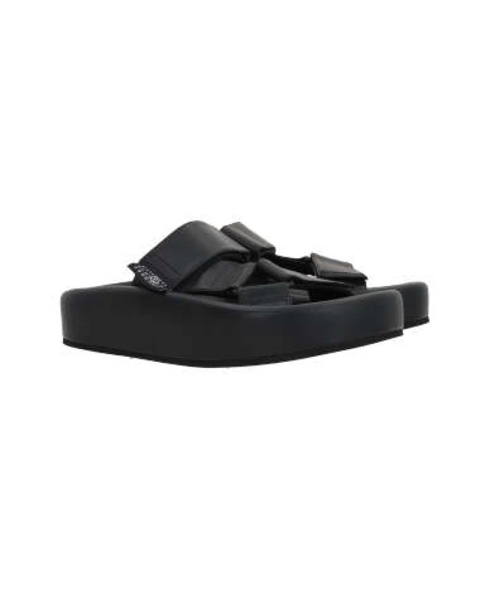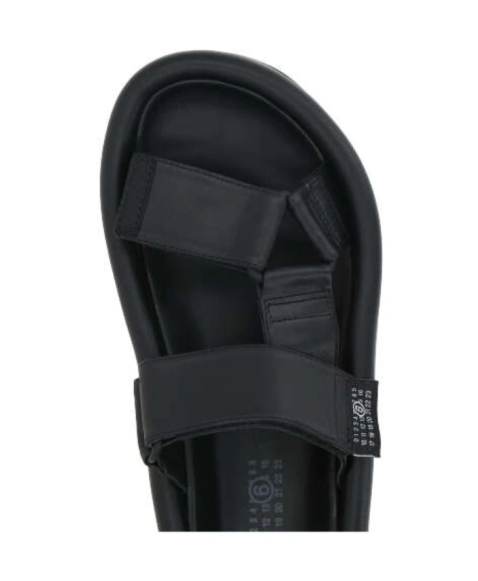 Подчеркните свой летний стиль с помощью шлепанцев на плоской подошве черного цвета из кожи наппа от MM6 Maison Margiela. Эти сандалии оснащены регулируемыми ремешками на липучке, закругленным носком, кожаной подкладкой и резиновой подошвой. Сбоку имеется знаковый цифровой логотип. Размер IT Flatform 40 мм. Оказывается нормально.