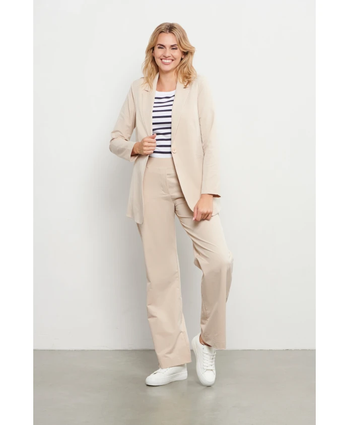 Улучшите свой гардероб этим красивым длинным пиджаком без подкладки от &Co Woman. Этот пиджак, изготовленный из ткани для путешествий, имеет передний прорезной карман, застежку на одну пуговицу, воротник/лацкан и подплечники. Сочетайте его с женскими брюками Penny от &Co, чтобы создать шикарный образ. Материал: 87% полиамид - 13% эластан. Рекомендации по уходу: Машинная стирка макс. Деликатная стирка 30 градусов. Не подходит для сушилки.